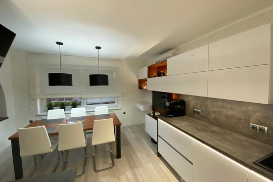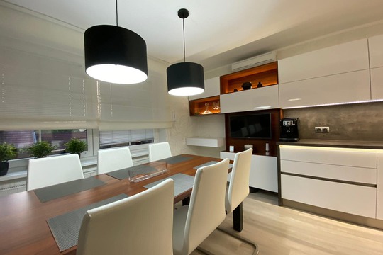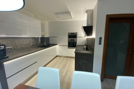 Pro osvětlení pracovní desky byl zvolen LED pásek o výkonu 9,6W/m v neutrální barvě. A pro hlavní osvětlení LED pásek o výkonu 14,4W/m, který je doplněn o kontrolér do lišty ke stmívání DSP2. Jako napájecí zdroje jsme použili zdroje řady NPV s 5 letou zárukou.