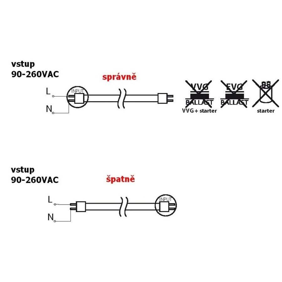 Startér není součástí balení, ale lze jej dokoupit samostatně v případě, že vaše zapojení vyžaduje jeho použití. Podrobné informace o možnostech zapojení najdete v návodu. LED trubice poskytují velké výhody oproti klasickým, až o 70% nižší spotřebu, velmi dlouhou životnost a okamžité rozsvícení. Patice G13 je stejná jako u klasické zářivky.