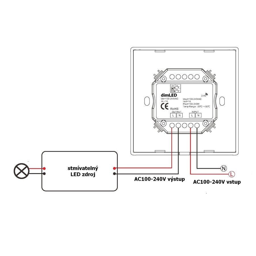 Nástěnný triakový LED stmívač dimLED KNT240W kombinuje vlastnosti přijímače a ovladače. S jedním ovladačem KNT240W lze ovládat 1 okruh, který se může skládat i z několika přijímačů na více místech. Zároveň lze přímo na výstup stmívače KNT240W připojit LED osvětlení a ovladač KNT240W použít i jako přijímač. Ovladačem KNT240W lze tedy ovládat i jiné řady přijímačů dimLED a zároveň k němu lze spárovat jiné modely ovladačů dimLED.