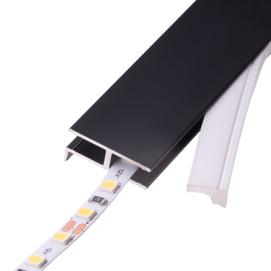 Součástí profilu jsou 2 silikonové kryty, které se po nalepení LED pásku vloží zpět do profilu. Lze samozřejmě osvětlit pouze jednu stranu profilu s jedním LED páskem. Koncovky nejsou součástí profilu.