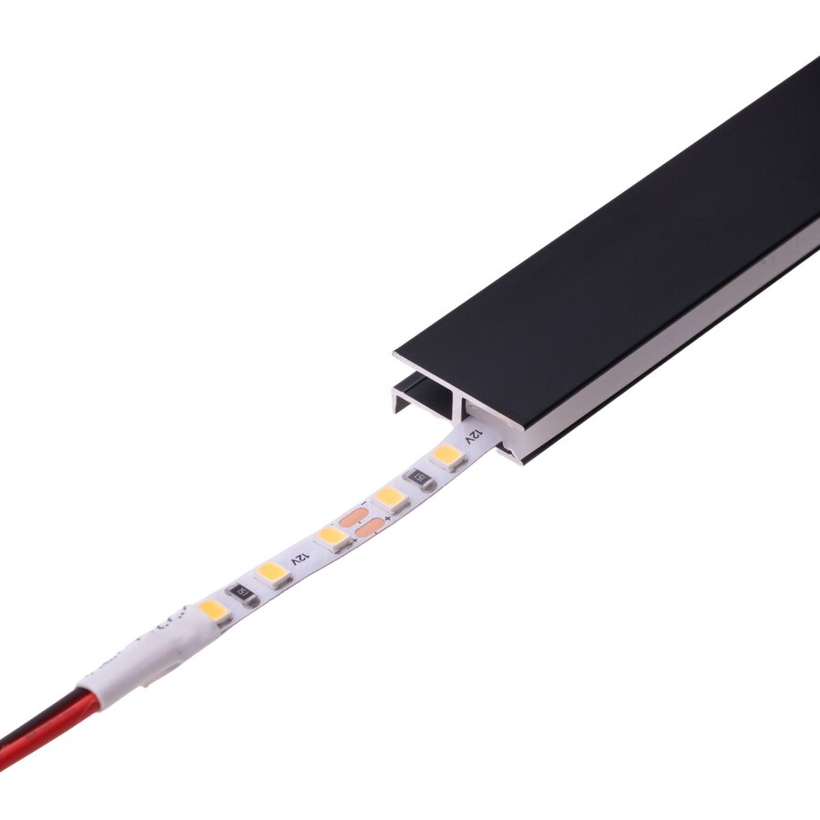 Součástí profilu jsou 2 silikonové kryty, které se po nalepení LED pásku vloží zpět do profilu. Lze samozřejmě osvětlit pouze jednu stranu profilu s jedním LED páskem. Koncovky nejsou součástí profilu.