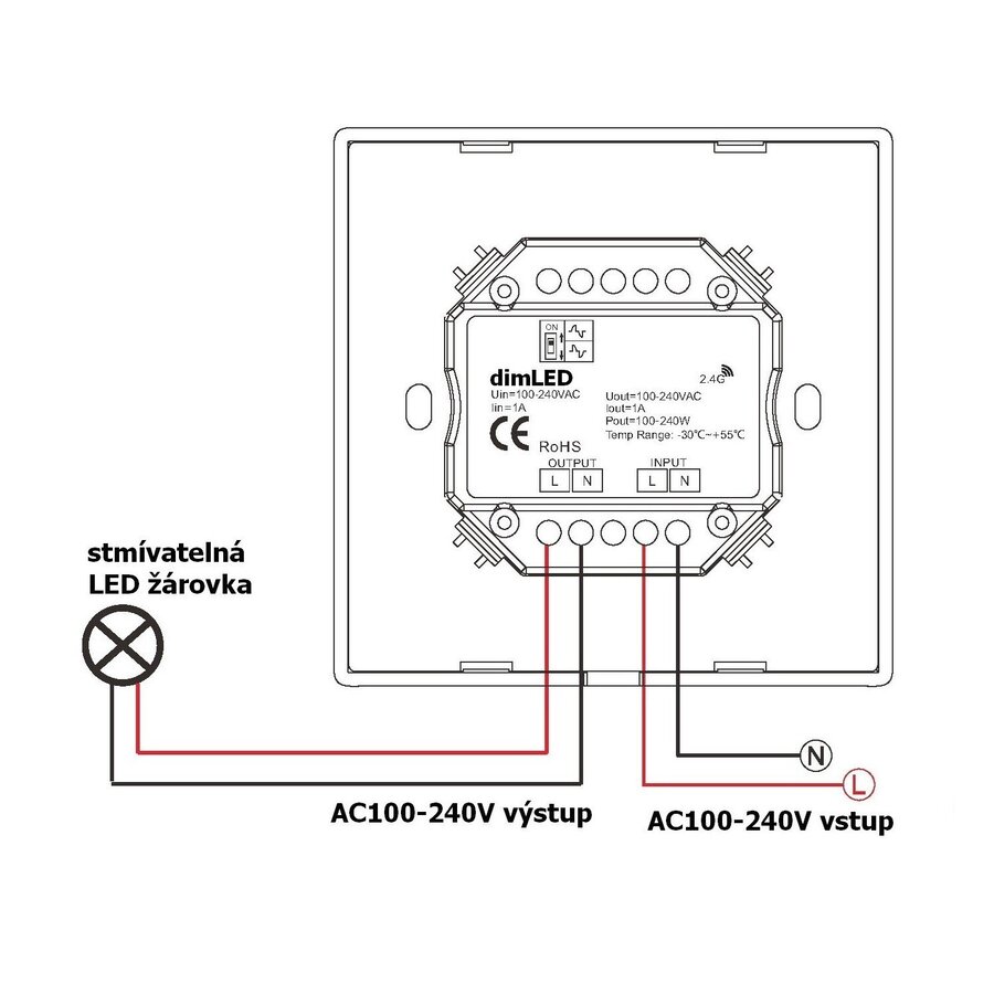 Nástěnný triakový LED stmívač dimLED KNT240W kombinuje vlastnosti přijímače a ovladače. S jedním ovladačem KNT240W lze ovládat 1 okruh, který se může skládat i z několika přijímačů na více místech. Zároveň lze přímo na výstup stmívače KNT240W připojit LED osvětlení a ovladač KNT240W použít i jako přijímač. Ovladačem KNT240W lze tedy ovládat i jiné řady přijímačů dimLED a zároveň k němu lze spárovat jiné modely ovladačů dimLED.