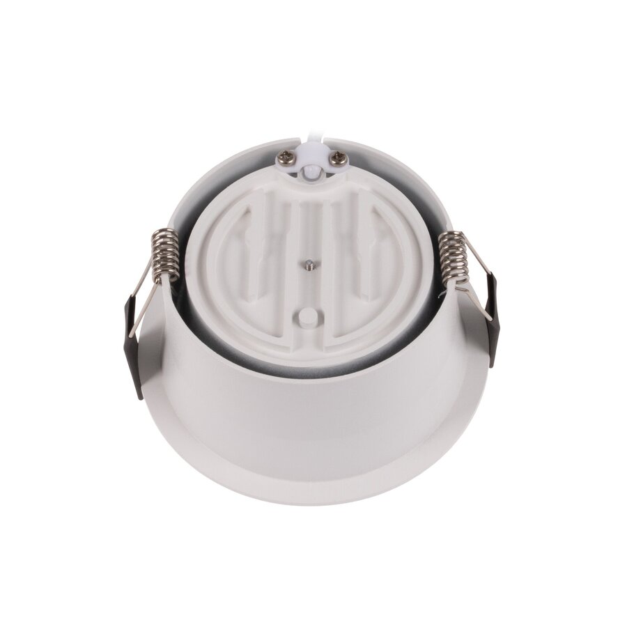 Montáž je rychlá a jednoduchá díky pružinám, které jsou součástí balení. Doporučený montážní otvor ve stropě je 75 mm. Na napájecím zdroji svítidla najdete přepínač pro nastavení teploty světla (CCT), který umožňuje zvolit jednu ze tří barev světla: